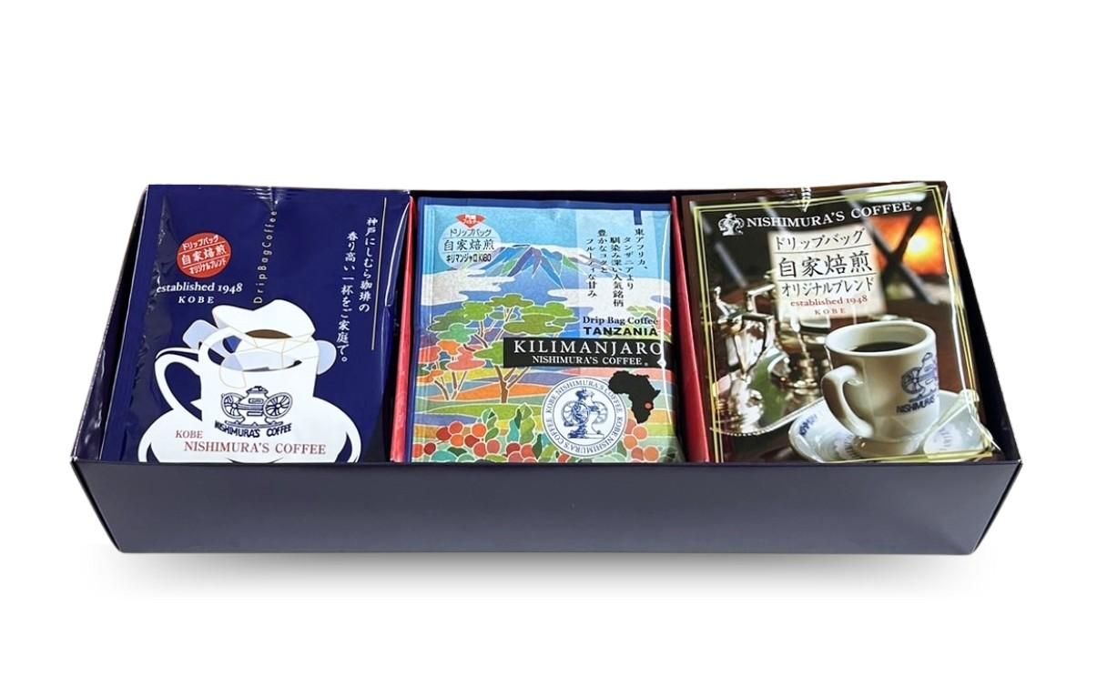 定番と限定銘柄の全種ドリップバッグをバランスよく詰め合わせた、にしむら自慢のギフトです。
