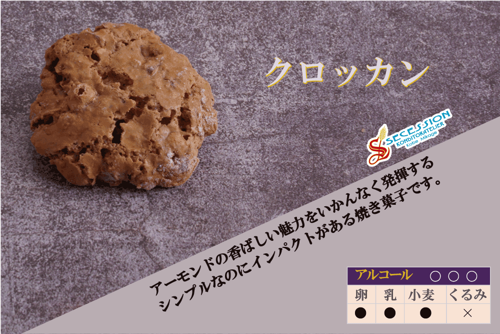 クロッカン:粉糖、アーモンド、小麦粉、卵白(一部に卵、小麦、アーモンドを含む)