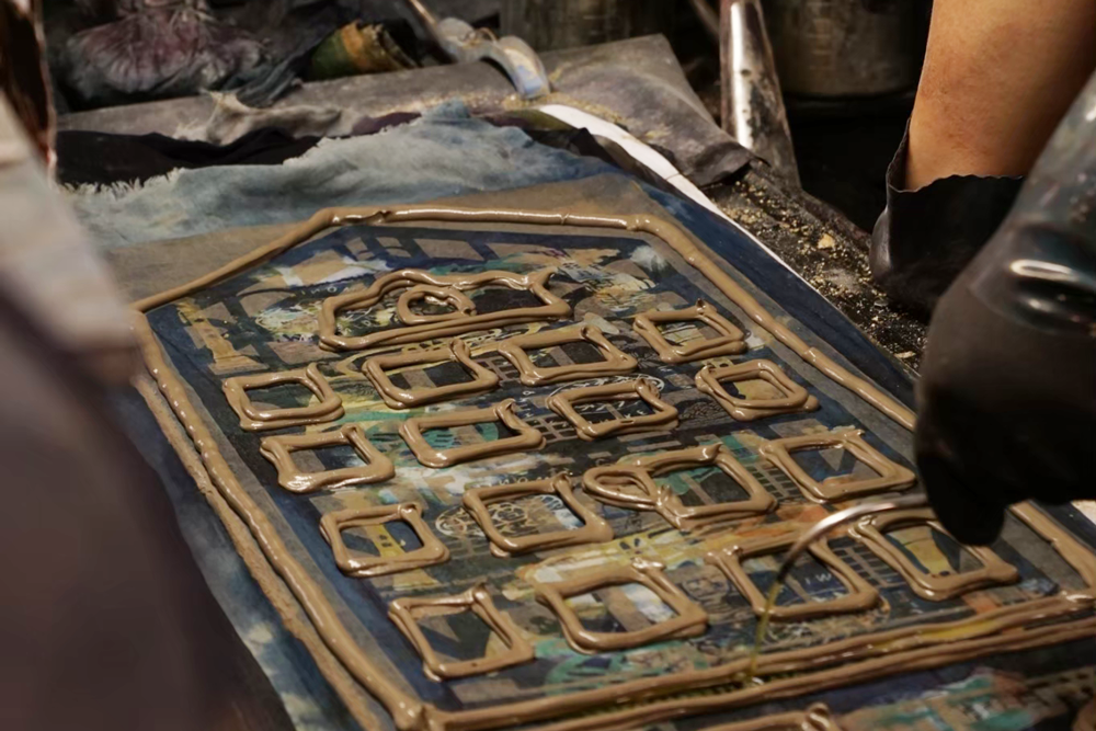 「手ぬぐい」は大阪堺の染め工場の手ぬぐいブランド「にじゆら」とにしむら珈琲のコラボ商品です。中山手本店をモチーフに、「物語のある場所でありたい」というにしむら珈琲の願いを見事に再現していただきました。職人の手作業で作られた繊細でやさしい手ぬぐいです。