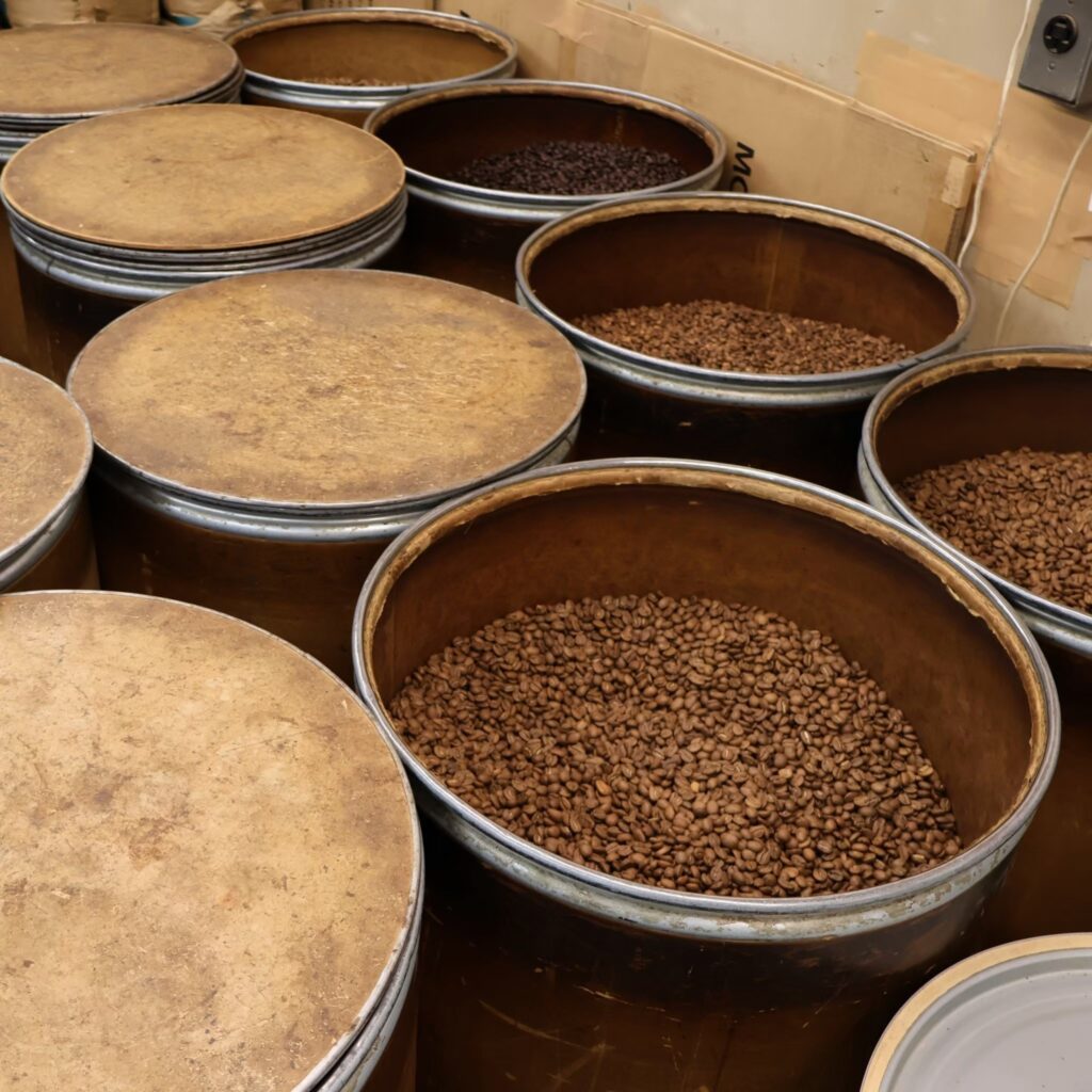 使用する6種の豆は、それぞれが持つ魅力を最大限に引き出すため、1銘柄ずつ個別に焙煎。この「豆それぞれの個性を活かす」工程を経た後、最高のバランスとなるようブレンディングします。