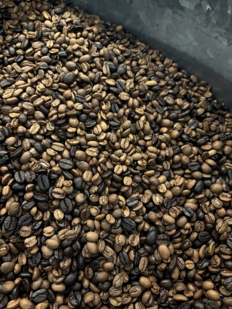 厳選した6種の豆をそれぞれ別々に焙煎し、最後に手作業でブレンドしています。どなたにも美味しく楽しんでいただけるように作られた、こだわりの味わいです。豆をご購入いただいたお客様からは、その色の違いに驚かれることも。