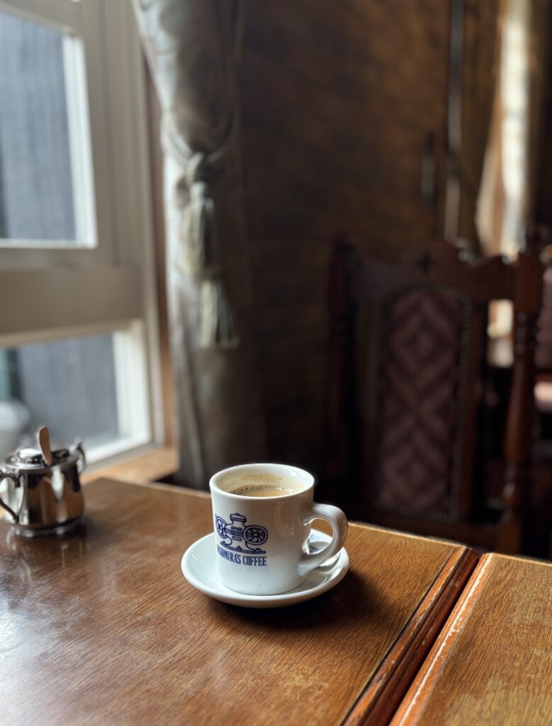 ブラックコーヒーが苦手な方には、このブレンドを使った「カフェ・オ・レ」がおすすめです。ミルクとの相性が抜群で、肉厚で大きめのカフェオレ用カップに注いでご提供しています。